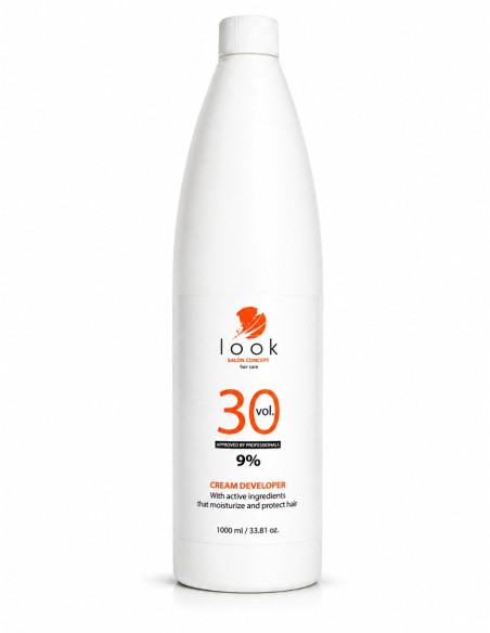 LOOK Salon Concept hapete 9% – 1000 ml on ammattikäyttöön tarkoitettu hapete, joka varmistaa tasaiset ja laadukkaat tulokset hiusten värjäyksessä ja vaalennuksessa.