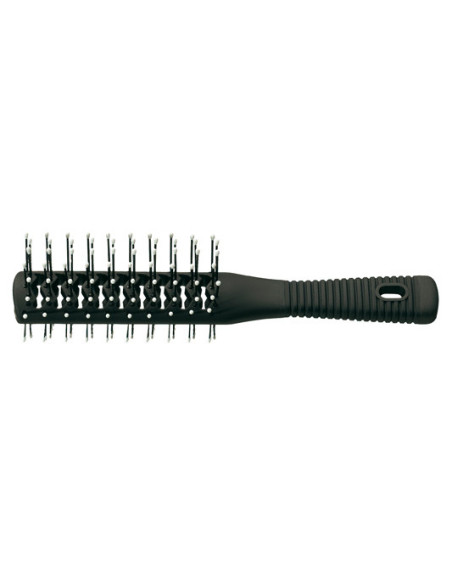 Kaksipuolinen hiusharja hiusten kuivaamiseen. Hiusharjassa on uurrettu kumikahva, jonka ansiosta sitä pysyy tukevasti kädessä.