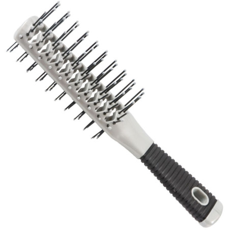 Kumipäällysteisen uritetun kahvan ansiosta voit työskennellä turvallisesti ja harjaa on helppo käyttää sekä märissä että kuivissa hiuksissa.