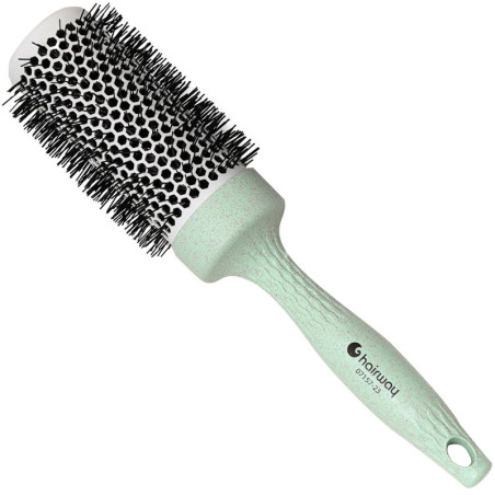 Ympäristöystävällinen hiusharja, joka on valmistettu biopohjaisesta muovista, ilman pehmentäviä aineita ja on kierrätettävä. Kestävässä tuotannossa pienemmät CO2-päästöt. Alumiinirungon keraaminen pinnoite varmistaa optimaalisen lämmön jakautumisen ja pysyvyyden.