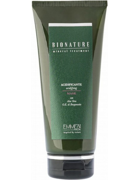 Kevyt ja helposti huuhdeltava, tämä uudelleenrakentava naamio antaa hiuksille kevyen suojakalvon, joka antaa pitkäkestoisen silkkisen vaikutuksen. Sisältää bergamotin eteeristä öljyä, aloe veraa ja serenoa repens -uutetta. Sisältää suojaavaa vaikutusta hiuksiin, antaen niille pehmeän ilmeen ja pitkäkestoisen silkkisen vaikutuksen. Antaa tuuheutta ja volyymia, vahvistaa katkeilevia hiuksia. Erinomainen voimakkaasti käsitellyille hiuksille, se ravitsee ja uudelleenrakentaa niitä syvältä. Tärkeimmät ainesosat: elvytetty vesi, teepuuöljy, aloe barbadensis -mehu, bergamottiöljy, sahapalmu, soijaproteiini, vehnäproteiini, retiisin suodosuute, rosmariiniöljy, nokkosuute, humalauute, pioninjuuriuute. Käyttöohjeet: Levitä pieni määrä tuotetta pituuksiin kylvyn jälkeen, odota muutama minuutti ja huuhtele. Huuhtelun jälkeen käytä Bionature mineralisoivaa voidetta kosteisiin tai kuiviin hiuksiin.