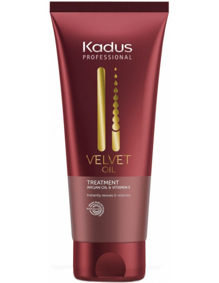 Velvet Oil -hiusnaamio ravitsee hiuksia, palauttaa vaurioituneet hiussuomut, vahvistaa ja ehkäisee hiusten ikääntymistä. Se tekee hiuksista eloisammat ja antaa niille luonnollisen kiillon. Sisältää arganöljyä, E-vitamiinia ja pantenolia, jotka helpottavat hiusten muotoilua, harjaamista ja vähentävät pörröisyyttä. Käyttö: Levitä pieni määrä hiusnaamiota kosteisiin hiuksiin ja hiero hellävaraisesti. Anna vaikuttaa 5 minuuttia. Huuhtele huolellisesti runsaalla vedellä.