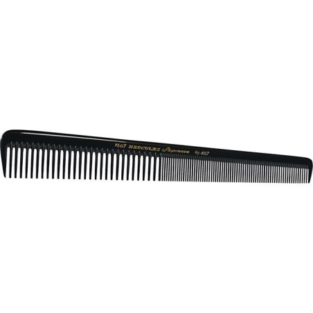 Kampa nro 1607-487. Kartiomainen kampa hiustenleikkaukseen. Täydelliset kammat hiustenleikkaukseen. Sopii hyvin käteen, liukuu helposti hiusten läpi. Ne ovat tarkimpia muotojen leikkaamisessa ja siirtymien luomisessa. Tämän saavuttamiseksi kamman hampaiden leveys, kamman geometria ja selän joustavuus on säädettävä yksilöllisesti kampaajan leikkaustekniikan ja henkilökohtaisen tyylin mukaan. Jokaiselle leikkaustekniikalle ja jokaisen kampaajan yksilölliseen tyyliin löytyy ihanteellinen kampa: • Kokeiltu ja testattu muotoilu täydellisellä ergonomialla. • Ei kierry, mutta on samalla joustava. • Hellävarainen päänahalle ja hiuksille - täydellisesti pyöristettyjen, tärinää vaimentavien hampaiden, kiillotetun tyviosan ja kamman mukautetun selän ansiosta. • Kestää kemikaaleja ja lämpöä.