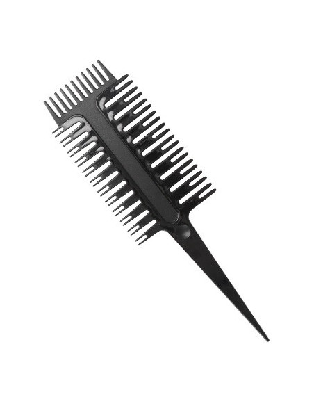 Monitoiminen kampa erilaisiin hiusten vaalennustekniikoihin. Kolmionmuotoinen asettelu erikokoisilla hampailla. Terävä kahva.