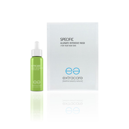 Tehokas hoitojärjestelmä kuivalle iholle. 42 ml * 6 x 27 g. Nutricare Alginate Intensive Fluid – Tehokas hoitoneste-aktivaattori kuivalle iholle. Ainesosat: Oliivi, perulainen maito ja kurkku, jotka auttavat vakauttamaan hydrolipidikerrosta, ravitsevat ja kosteuttavat ihoa sekä estävät transdermaalista kosteuden haihtumista. Ravista ennen käyttöä. 92,86 % luonnollista alkuperää olevia ainesosia. Specific Alginate Intensive Mask – Leväjauhenaamio tehokkaaseen hoitoon. Tehokasvaikutteinen levä. Ainesosat: Piima mahdollistaa aktiivisten aineiden tunkeutumisen syvempiin kerroksiin, remineralisoi ihoa ja tekee siitä kirkkaamman. 100 % luonnollista alkuperää olevia ainesosia.
