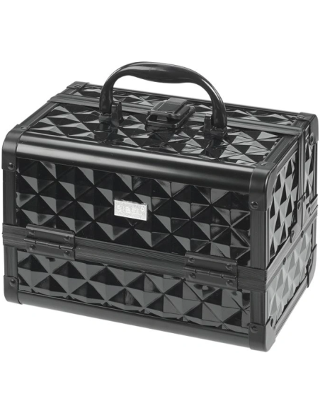 Beauty Case -laukku ulosvedettävällä laatikolla ja peilillä, musta.