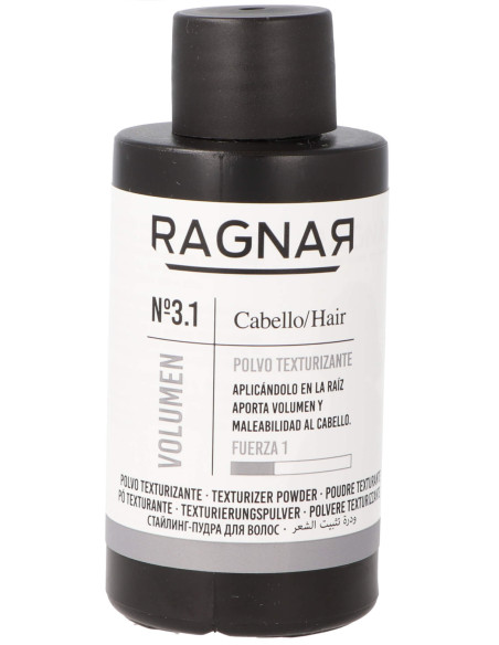 Ragnar No. 3.1 Texturizing and Volumizing Powder on täydellinen tuote niille, jotka haluavat muuttaa kampaustaan nopeasti ja vaivattomasti. Se antaa vaikuttavaa volyymia tyvestä alkaen ja kevyen koostumuksen, joka korostaa hiusten luonnollista tyyliä. Innovatiivisen ultrahienon puuterikoostumuksensa ansiosta se tarjoaa raikkaan vaikutelman, joka ei latista hiuksia tai jätä näkyviä jäämiä, pitäen hiukset rennon ja tuuheina koko päivän. Pehmeän ja joustavan pidon ansiosta voit muotoilla hiuksiasi niin monta kertaa kuin haluat, ja saavuttaa monipuolisen ilmeen luonnollisesta ja rennosta vaikutelmasta strukturoidumpiin tyyleihin. Ominaisuudet: - Pehmeä ja joustava pito. - Luonnollinen tulos ilman liiallista kiiltoa. - Kevyt koostumus, joka ei latista hiuksia. - Helppo levittää ja jakaa tasaisesti. - Antaa välittömästi volyymia ja tuuheutta. - Ihanteellinen luonnollisiin kampauksiin. Edut: - Antaa välittömästi volyymia jättämättä näkyviä jäämiä. - Antaa hellävaraisen pidon, joka ylläpitää hiusten liikkuvuutta. - Edistää luonnollista ja vaivatonta ilmettä. - Kevyt koostumus takaa helpon muotoilun ilman lisäpainoa. - Monipuolinen tuote, joka sopii kaikille hiustyypeille ja -tyyleille. Käyttö: - Levitä pieni määrä suoraan tyveen tai kämmenelle. - Hiero tuotetta hellävaraisesti sormillasi, jotta se jakautuu tasaisesti. - Muotoile hiuksesi haluamallasi tavalla.