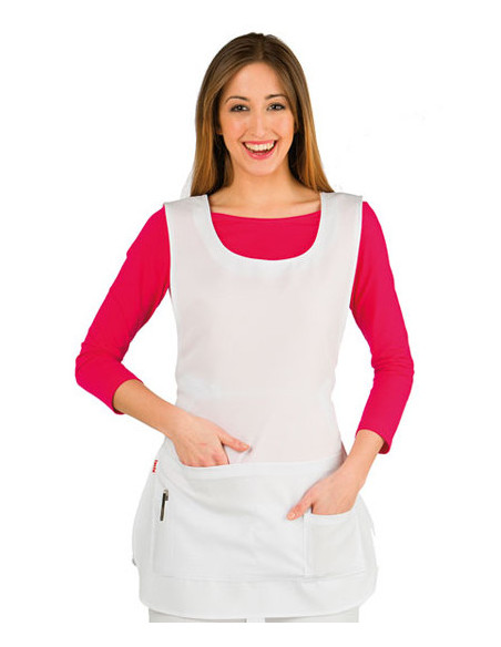 Esiliina taskulla, joustavaa polyesteriä, solmittava, pituus 77,5 cm, valkoinen