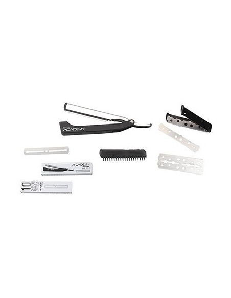 ACADEMY-HARJANTERÄ, PVC-VARSI. Varustettu 10 kapealla kaksipuolisella terällä.
