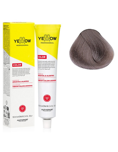 YELLOW COLOR - ammattimainen, ravitseva kestoväri värjää hiukset tehokkaasti, peittää harmaat hiukset 100 % ja on erityisen hellävarainen hiusrakenteelle ja päänahalle erittäin alhaisen ammoniakkipitoisuutensa ansiosta. Värjäyksen jälkeinen tulos - kiiltävät, silkkisen pehmeät ja sileät hiukset. Hiusväri tarjoaa ammattimaisia ​​tuloksia: • peittää hiukset tasaisesti, • värjää harmaat hiukset täydellisesti, • antaa hiuksille luonnollisen ja tasaisen sävyn, • on erityisen kestävä ja värjäyksen jälkeen hiusväri säilyttää kylläisyytensä 1 kuukauden ajan, • antaa hiuksille kiiltoa, kosteuttaa ja ravitsee hiuksia. Alhaisen emäksisten ainesosien pitoisuuden ansiosta YELLOW COLOR -hiusväri vaalentaa ja värjää hiuksia erittäin hellävaraisesti ylläpitäen hiusten pH-tason optimaalista tasapainoa. Hiusväri sopii sekoitettavaksi vain YELLOW COLOR PEROXIDE- tai TECH+ PEROXIDE -hapettimien kanssa. YELLOW COLOR -hiusvärin ainutlaatuinen koostumus on rikastettu: - Arganöljyllä, joka sisältää omega-3-, omega-6- ja E-vitamiinirasvahappoja, ja palauttaa hiusten elinvoiman ja antaa hiuksille silkkisen rakenteen; - Aloetrix-kompleksi, joka sisältää aloe veraa, vehnäproteiineja ja UV-suodattimia, kosteuttaa hiuksia, helpottaa harjaamista ja suojaa hiusrakenteen ulkokerrosta. KÄYTTÖ: Sekoita ei-metallisessa astiassa valittu YELLOW COLOR -hiusväri yhden YELLOW COLOR PEROXIDE- tai TECH+ PEROXIDE -hapettimen kanssa 1,5 % (5 vol.), 3 % (10 vol.), 6 % (20 vol.), 9 % (30 vol.) tai 12 % (40 vol.) valitusta palvelusta ja halutusta tuloksesta riippuen. Mahdollisten palveluiden luettelo, hiusvärin ja hapettimen sekoitussuhteet sekä vaikutusajat mainitaan YELLOW COLOR -hiusvärin käyttöohjeissa, jotka voi tarkastella skannaamalla väripakkauksen QR-koodin mobiililaitteella olevalla sovelluksella.
