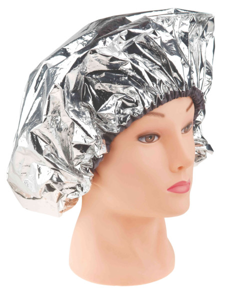 Kiharrinhattu. Kertakäyttöinen, itsestään lämpenevä, kumilla päällystetty.