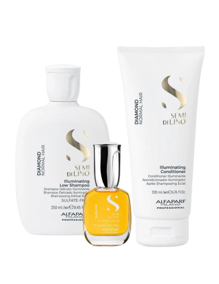 Alfaparf Semi Di Lino Diamond -lahjasetti on täydellinen hiusten kiilto jouluun. SDL Diamond -shampoo puhdistaa normaalit hiukset hellävaraisesti jättäen ne pehmeiksi, silkkisiksi ja kiiltäviksi, kun taas SDL Diamond -hoitoaine selvittää ja antaa kiiltoa latistamatta hiuksia. Viimeistele hoito ikonisella Cristalli Liquidi -seerumilla, joka antaa välitöntä suojaa ja kiiltoa. Tämä Alfaparf-lahjasetti on pakollinen hankinta jokaiselle hiustenhoidon ystävälle tänä jouluna!