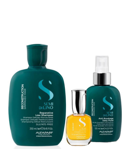 Alfaparf Semi Di Lino Reconstruction -lahjasetti on paras ratkaisu vaurioituneille hiuksille tänä jouluna. SDL Reconstruction -shampoo puhdistaa hellävaraisesti ja auttaa palauttamaan hiusten vahvuuden ja kimmoisuuden jokaisen pesun jälkeen. Käytä sen jälkeen SDL Reconstruction -naamiota, joka antaa syvän ja palauttavan hoitoaineen, joka lisää hiusten vastustuskykyä katkeilua vastaan. Viimeistele hoitorutiinisi ikonisella Cristalli Liquidi Serum -seerumilla, joka antaa välitöntä kiiltoa ja suojaa. Täydellinen hiusten elinvoiman ja kauneuden palauttamiseen tänä jouluna!